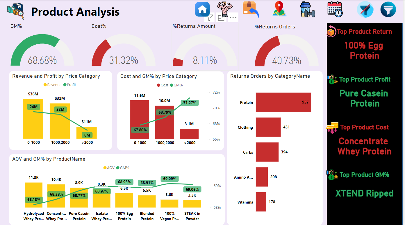 2. Product Performance: Identified top-performing products and areas needing improvement.