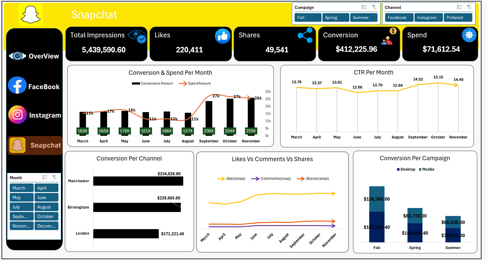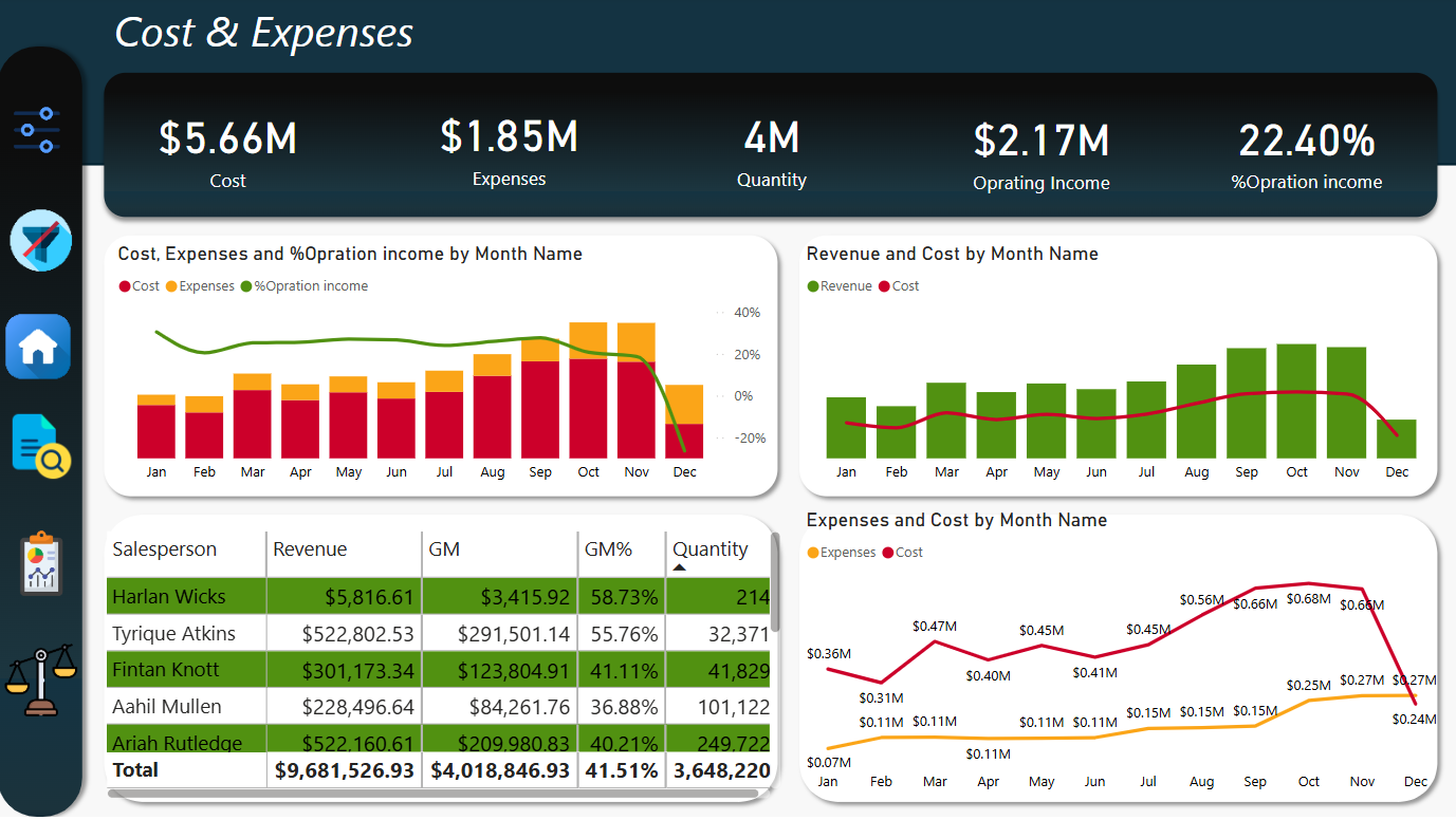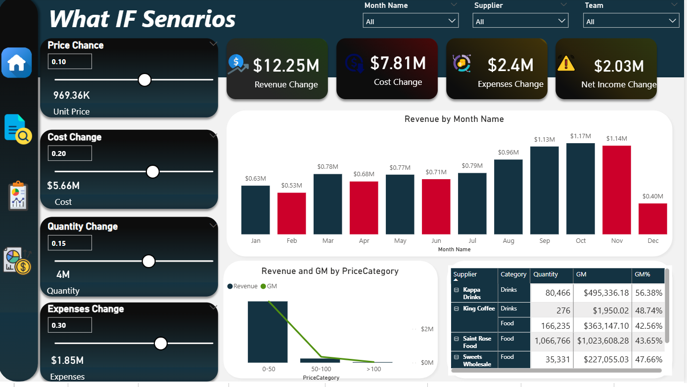 Created an interactive dashboard displaying key KPIs and sales trends, with dynamic filters to drill into data by location, time, and product categories.